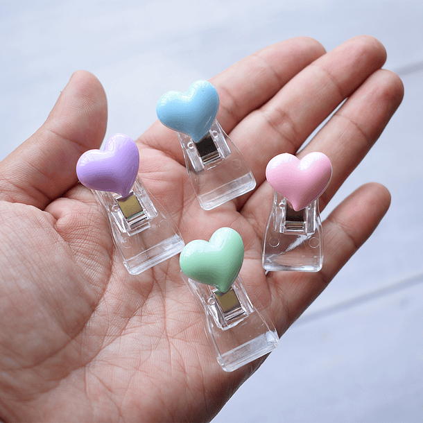 - El set contiene 4 clips diferentes con diseño de corazones